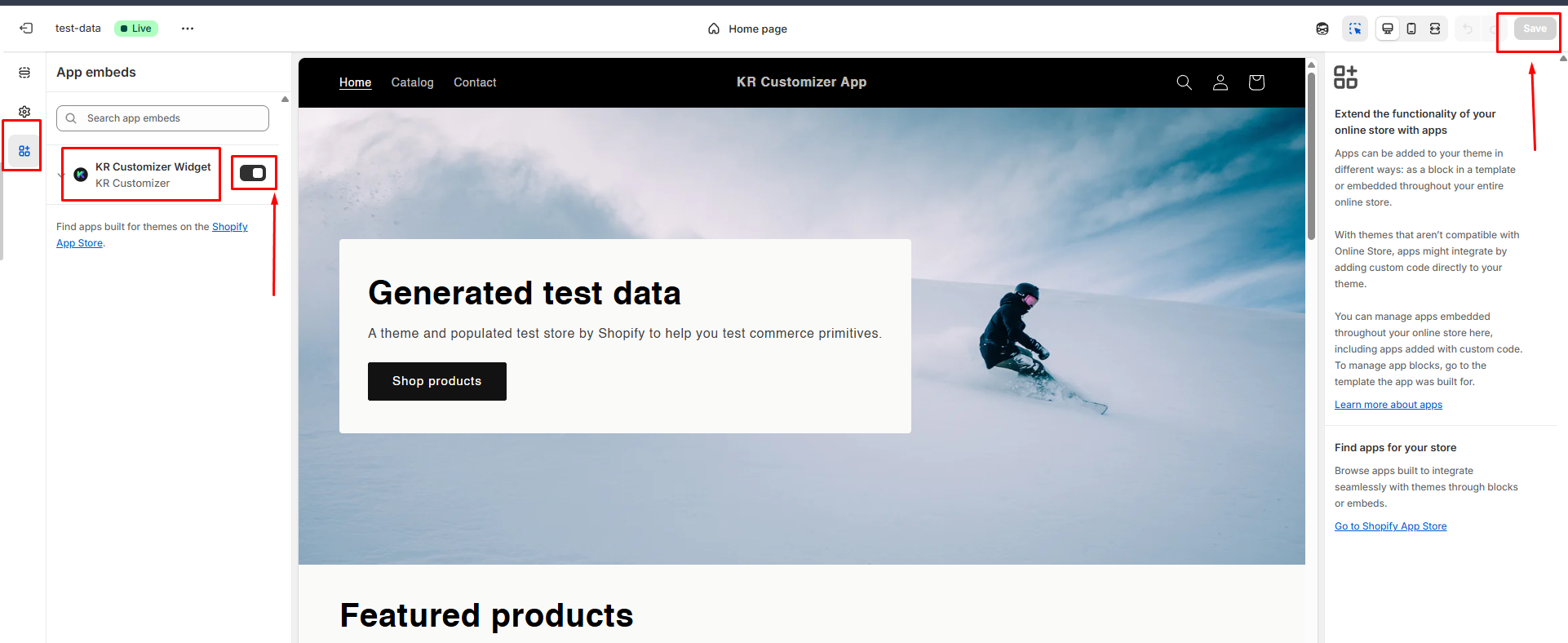 - Enable App embeds: